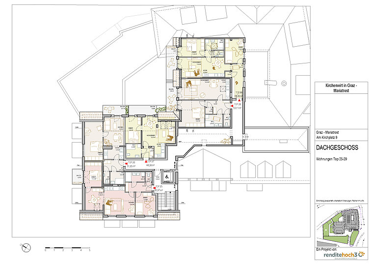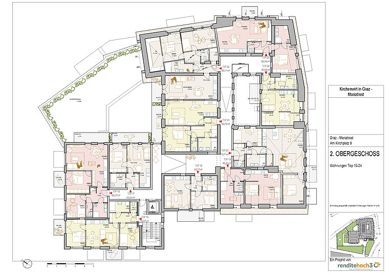 Aus dem 1689 erbauten Purbergschlössl am Hügel im Nordosten der Stadt entwickelte sich ein historischer Platz mit der sehenswerten Basilika Mariatrost. Aus den ehemaligen Unterkünften im Haus entstehen 35 attraktive Wohnungen auf einer Gesamtnutzfläche von 2.335 m² mit traumhaftem Grün- und Fernblick über Graz. Gar nicht fern sind die Verbindungen zur Grazer Innenstadt und zu allem, was man so